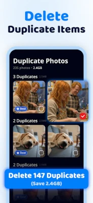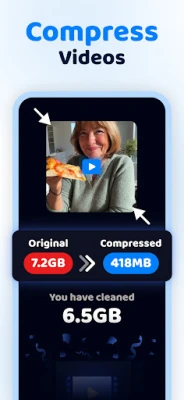 „Cleanup" siūlo pažangias funkcijas, kurios perkelia jūsų telefono tvarkymą į naują lygį. Pamirškite ilgas valandas, praleistas naršant po galeriją – programa automatiškai aptinka ir pašalina dubliuotas bei panašias nuotraukas vos per kelias sekundes. Jos išmanusis dirbtinis intelektas parenka geriausius kadrus, užtikrindamas, kad išvalius galeriją išliktų tik tie vaizdai, kuriuos iš tiesų norite išsaugoti. Be to, nustatykite ir panaikinkite pasikartojančius ekrano vaizdus bei beveik identiškus vaizdo įrašus, kurie be reikalo užima vietą. O jei dideli vaizdo įrašai lėtina jūsų telefoną, „Cleanup" vaizdo įrašų glaudintuvas sumažins jų failų dydį, išlaikydamas aukštą kokybę ir atlaisvindamas gigabaitus vietos.