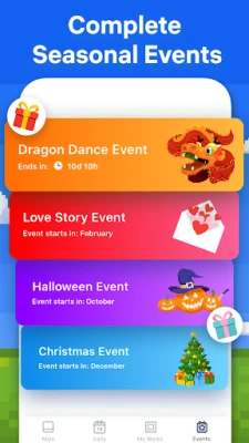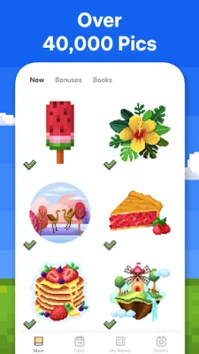 „Pixel Art" siūlo ne tik begalę paveikslėlių, bet ir įtraukiančias naujoves. Susipažinkite su išskirtiniu „Gėlių Sodo" funkcionalumu, kuriame spalvindami unikalius objektus galėsite kurti savo nuostabų sodą ir už tai pelnyti vertingų apdovanojimų. Paverskite asmenines nuotraukas pikselių meno šedevrais naudodami „Pixel Art" kamerą – tiesiog įkelkite nuotrauką, nustatykite sudėtingumo lygį ir mėgaukitės smagia kūryba. Mėgaukitės ir 3D objektų spalvinimo teikiamais malonumais, kurie suteikia dar daugiau gyvybės jūsų kūriniams. Be to, dalyvaukite teminiuose sezoniniuose renginiuose, spalvindami specialiai sukurtus paveikslėlius ir rinkdami unikalius prizus, skirtus šventėms ir festivaliams, tokiems kaip Kalėdos ar Helovinas.