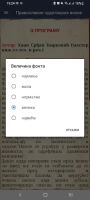 Kadangi pasaulyje gausu stebuklingų, kanonizuotų stačiatikių ikonų, ši programa pristato kruopščiai atrinktą ir apribotą kolekciją, siekdama užtikrinti kokybę ir gilumą. Mūsų kolekcijoje rasite šventas ikonas iš garsiosios Šventojo Atono kalno, vertingas Serbijos stačiatikių Bažnyčios šventenybes bei dalį iškiliausių ir gerbiamiausių Rusijos stačiatikių ikonų. Siekdami maksimalaus patogumo, programoje integruota galimybė lengvai reguliuoti šrifto dydį pagrindiniame meniu, pritaikant turinį savo skaitymo poreikiams.